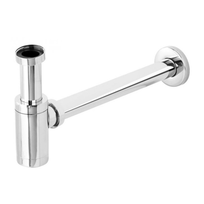 Il sifone di scarico dalla forma a bottiglia per bidet e lavandini è in ottone cromato. Realizzato con materiale resistente alla corrosione e compatibile con attacchi standard G 1”1/4. Le dimensioni compatte e finitura cromata elegante, garantisce affidabilità e lunga durata in ogni bagno.