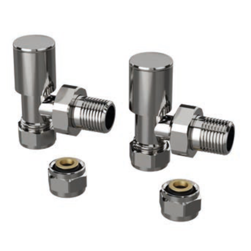 Kit Valvola e Detentore Cromato con raccordi per tubi multistrato 16x2