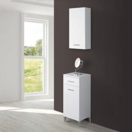 Pensile sospeso a parete in legno melaminico colore bianco lucido con 1 anta reversibile, con ripiano interno regolabile. N.B. : Componente aggiuntivo per composizione bagno, vedi immagine, segui descrizione.