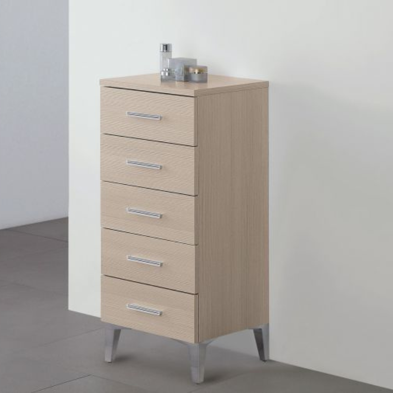Base colonna singola a terra da bagno in legno melaminico colore larice con 5 cassetti, con piedini in ABS silver.