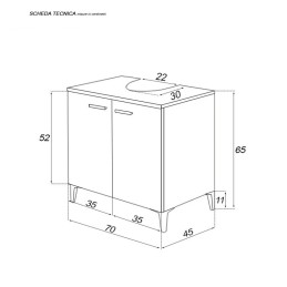Mobile sotto lavabo 70cm a terra in legno melaminico colore grigio composto da mobiletto con 4 piedini in ABS silver e dotato di 2 ante con mensola all'interno, con predisposizione per colonna porta lavabo.