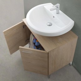 Composto da mobiletto con 4 piedini in ABS silver e dotato di 2 ante con mensola all'interno, con predisposizione per colonna porta lavabo.