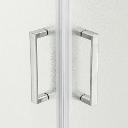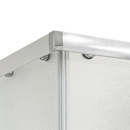 Cabina doccia 80x80 in vetro opaco con porte scorrevoli in cristallo temperato da 5mm di spessore. Le ante sono dotate di chiusura magnetica e di sgancio rapido. La struttura del box doccia è composta da un profilo in alluminio cromato lucido con possibilità di regolazione per pareti fuori squadro.