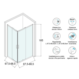 Box Doccia Quadrato 70x70 Vetro Trasparente linea Ego
