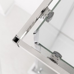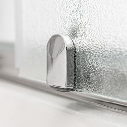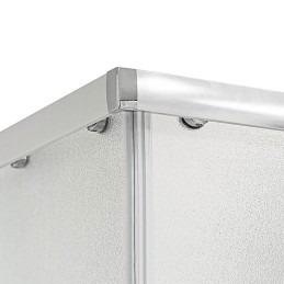 Cabina doccia 80x100 in vetro opaco con porte scorrevoli in cristallo temperato da 5mm di spessore con possibilità di installazione reversibile per un'apertura sia da destra che da sinistra. Le ante sono dotate di chiusura magnetica e di sgancio rapido. La struttura del box doccia è composta da un profilo in alluminio cromato lucido con possibilità di regolazione per pareti fuori squadro.