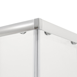 Cabina doccia 80x80 in vetro con porte scorrevoli trasparenti in cristallo temperato da 5mm di spessore. Le ante sono dotate di chiusura magnetica e di sgancio rapido. La struttura del box doccia è composta da un profilo in alluminio cromato lucido con possibilità di regolazione per pareti fuori squadro.