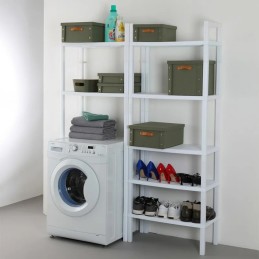 Abbinabile con ulteriore scaffale a 2 ripiani per ottimizzare anche la stanza lavanderia.