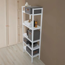 Scaffale da bagno con 4 ripiani in metallo resistente all’acqua e agli agenti atmosferici di colore bianco. Ideale per un bagno in linea moderna e sobria. Multifunzione portaoggetti e teli da bagno. Facile da montare con kit viti e bulloni inclusi.