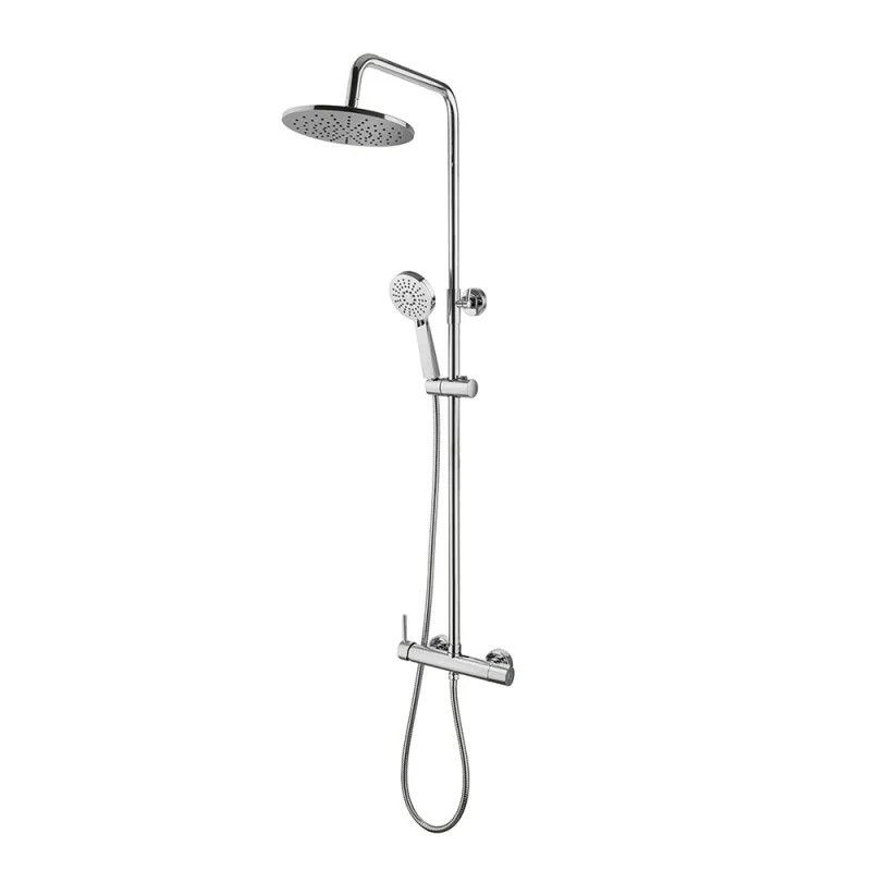 Set colonna doccia in acciaio e ottone con finitura superficiale di colore Cromo lucido.