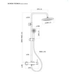 L'asta saliscendi è regolabile da 85 a 115 cm in altezza con un soffione doccia tondo da ben 22,5 cm di diametro.