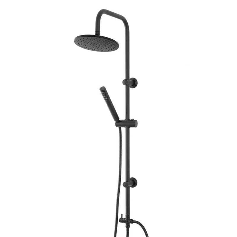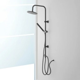 Set colonna doccia in acciaio e ottone finitura superficiale Nero opaco. Doccetta in ABS cromato lucido con ugelli anti calcare per mantenere la pulizia e l'igiene il più a lungo possibile. Il laccio flessibile per la doccetta mono-funzione è in acciaio a doppia graffatura dalla lunghezza di ben 150 cm, per ogni esigenza di lavaggio. Completo di...