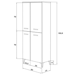 Colonna Armadio Portasciugamani a terra in legno melaminico colore rovere scuro con 2 ante con sistema slow motion per una chiusura ottimale, 2 ripiani interni removibili e regolabili, 1 cassetto con sistema soft-close e vano a giorno, con 4 piedini in ABS silver.