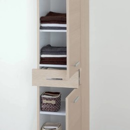 Colonna Armadio Portasciugamani 35cm colore larice con 2 ante e 1 cassetto linea Stella