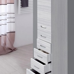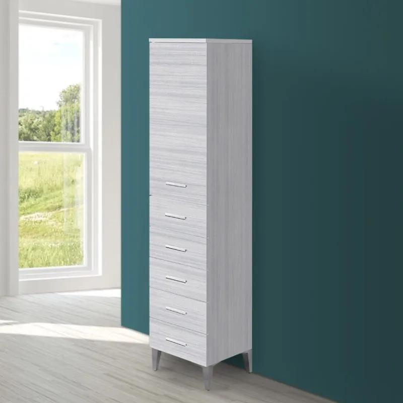 Colonna Armadio Portasciugamani a terra in legno melaminico colore grigio con 1 anta e 5 cassetti, con 4 piedini in ABS silver.