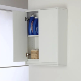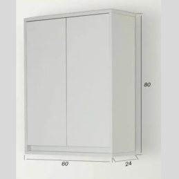 Pensile da bagno sospeso a parete in legno melaminico colore bianco laccato con 2 ante con sistema chiusura slow-motion per una chiusura ottimale, con 1 ripiano regolabile.
