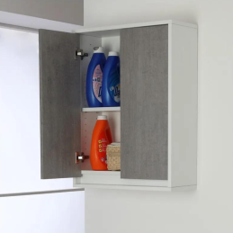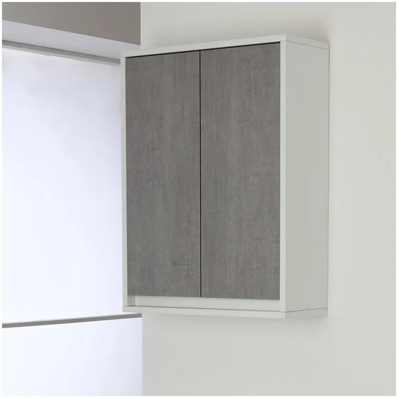 Pensile da bagno sospeso a parete in legno melaminico colore cassa bianco con 2 ante colore grigio cemento con sistema chiusura slow-motion per una chiusura ottimale, con 1 ripiano regolabile.