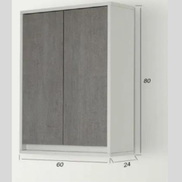 Pensile sospeso a parete in legno melaminico, cassa colore bianco con 1 anta reversibile colore grigio cemento con sistema slow motion per una chiusura ottimale, con ripiani interni regolabili e kit staffe per montaggio incluse. N.B. : Componente aggiuntivo per composizione bagno, vedi immagine, segui descrizione.