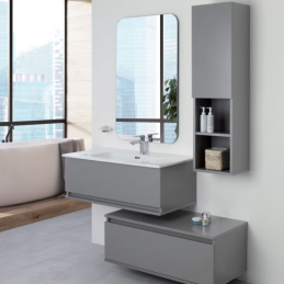 Mobile bagno 90cm sospeso grigio medio con 2 cassetti separati e specchio linea Pastello