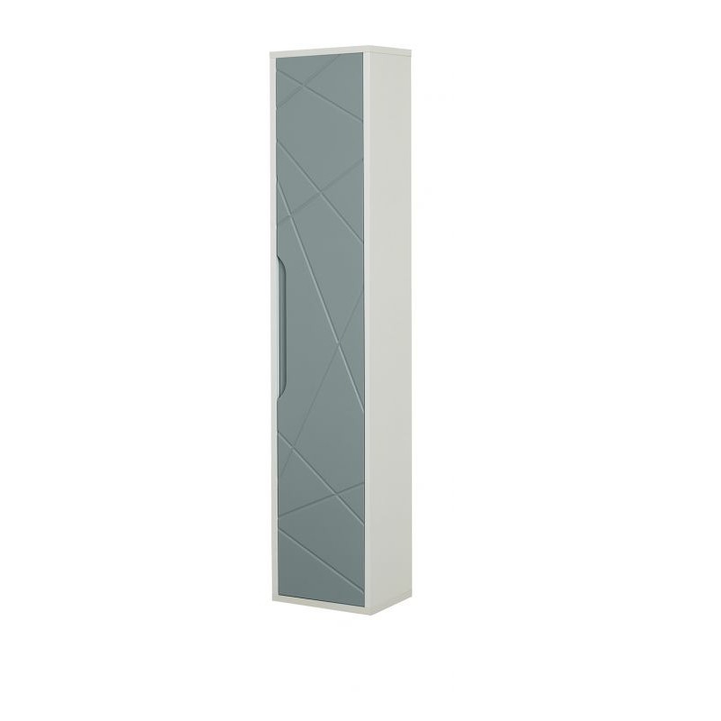 Pensile sospeso a parete in legno melaminico, cassa color bianco con 1 anta reversibile in MDF rivestita in PVC color verde salvia con sistema slow motion per una chiusura ottimale, con ripiani interni regolabili e kit staffe per montaggio incluse.