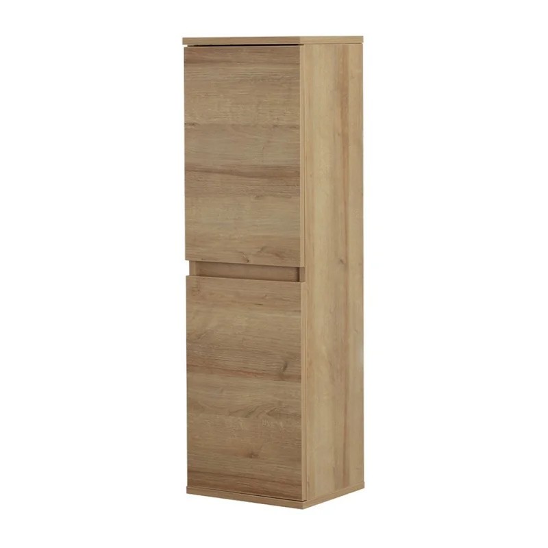 Colonna Armadio Portasciugamani a terra in legno melaminico colore rovere chiaro con 2 ante con sistema slow motion per una chiusura ottimale, 2 ripiani interni removibili e regolabili, 1 cassetto con sistema soft-close e vano a giorno, con 4 piedini in ABS silver.