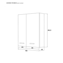 Pensile sospeso a parete in legno melaminico colore larice con 2 ante e ripiano interno regolabile. N.B. : Componente aggiuntivo per base colonna doppia, vedi immagine, segui descrizione.