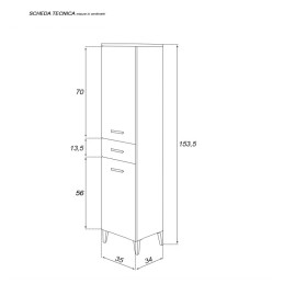 Colonna Armadio Portasciugamani a terra in legno melaminico colore rovere scuro con 2 ante con sistema slow motion per una chiusura ottimale, 2 ripiani interni removibili e regolabili, 1 cassetto con sistema soft-close e vano a giorno, con 4 piedini in ABS silver.