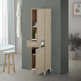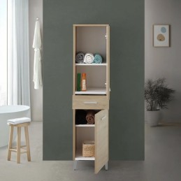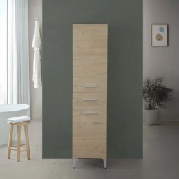 Colonna Armadio Portasciugamani a terra in legno melaminico colore larice con 2 ante e 1 cassetto, con 4 piedini in ABS silver.