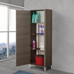 Armadio colonna portascopa a terra in legno melaminico colore rovere scuro con 1 anta reversibile con sistema slow motion per una chiusura ottimale , vano inferiore e 3 mensole regolabili predisposti per riporre scope e portaoggetti, con 4 piedini in ABS silver.
