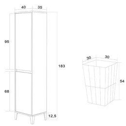 Colonna Armadio Portabiancheria a terra in legno melaminico colore rovere scuro con 2 ante reversibili con sistema slow motion per una chiusura ottimale , vano inferiore con cesta portabiancheria e vano superiore con 2 mensole regolabili portaoggetti, con 4 piedini in ABS silver.