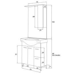 • Specchio con pensile 76x20x104 cm (LxPxH)