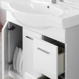 Mobile bagno 81cm bianco lucido con 2 ante, 2 cassetti e specchiera linea Stella