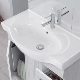 Mobile Bagno a Terra 80 cm 2 Ante Bianco e Rovere con Specchio e Lavabo linea Revital