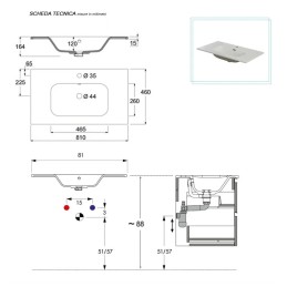 N.B. Colonna pensile, rubinetteria e lampada sono a scopo indicativo acquistabili a parte.