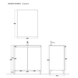 Il mobile già assemblato, è pronto per essere installato con appoggio su piedini in ABS cromato lucido.