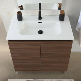 Il mobile da bagno a terra da 80 cm di larghezza in Noce canaletto non è solo un arredo: 2 ante con chiusura ammortizzata nascondono un ampio vano dove riporre ogni tuo accessorio per un ambiente ordinato e funzionale.