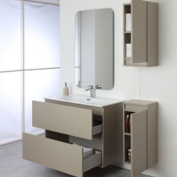 Mobile bagno 90cm sospeso tortora con 2 cassetti e specchio linea Pastello