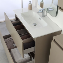 Mobile bagno 90cm sospeso bianco e tortora con 2 cassetti e specchio linea Furore