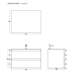 Mobile bagno 81cm sospeso in legno melaminico bianco lucido composto da mobiletto dotato di 2 cassettoni con sistema soft-close per una chiusura ottimale, lavabo in ceramica lucida e specchio filo lucido reversibile 60x80 cm.