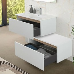 Trasforma il bagno in una oasi di stile con la linea Revital. Il mobile sospeso in Bianco frassino e Rovere da 80 cm non è solo un arredo, è la soluzione che stavi cercando. Design moderno che si fonde con la praticità: 2 ampi cassettoni con chiusura ammortizzata per inglobare ogni tuo accessorio, donandoti un ambiente ordinato e funzionale. Completo...