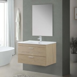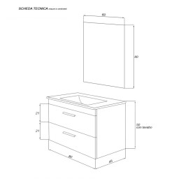 Composto da mobile dotato di 2 cassettoni con sistema soft-close per una chiusura ottimale, lavabo in ceramica lucida e specchio filo lucido reversibile 60 x 80 cm.