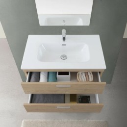 Mobile bagno 81 cm sospeso in legno melaminico di colore Rovere dolomite.