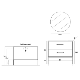 Completa di lavabo da appoggio in ceramica e specchio tondo filomuro da 60 cm, che aggiunge equilibrio e armonia all’ambiente bagno.