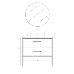 Completa di lavabo da appoggio in ceramica e specchio tondo filomuro da 60 cm, che aggiunge equilibrio e armonia all’ambiente bagno.