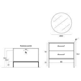 Completa di lavabo da appoggio in ceramica e specchio tondo filomuro da 60 cm, che aggiunge equilibrio e armonia all’ambiente bagno.