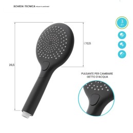 Doccetta Moderna 3 Funzioni Multigetto Tonda Anticalcare in ABS Nero Opaco linea Hidra