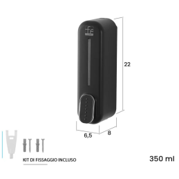 Dispenser Sapone Liquido 350ml in Plastica Nero a Muro