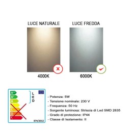 Lampada LED universale 30 cm triangolare in ABS cromato per specchi da bagno, tonalità luce naturale 4000k con potenza 5W con trasformatore incluso, doppia modalità di installazione sia su specchi con cornici che su specchi a filo lucido.