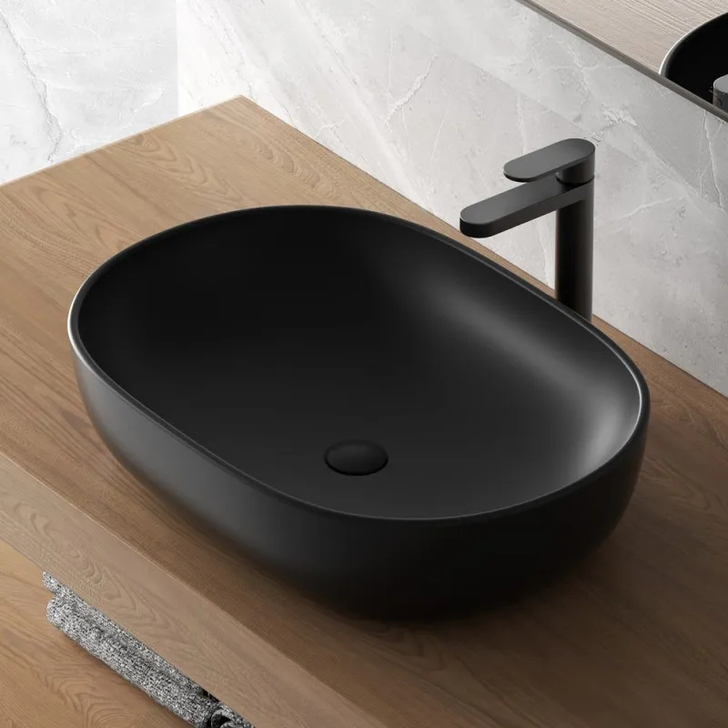 Lavabo Ovale da bagno 60x41 da appoggio in ceramica nero opaco linea Boston