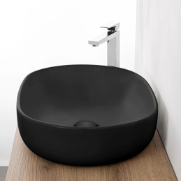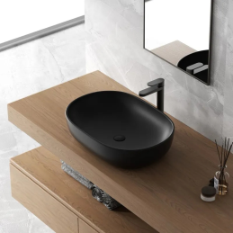 Ciotola Lavabo Ovale in ceramica colore nero opaco da appoggiare sul piano senza fissaggio.
