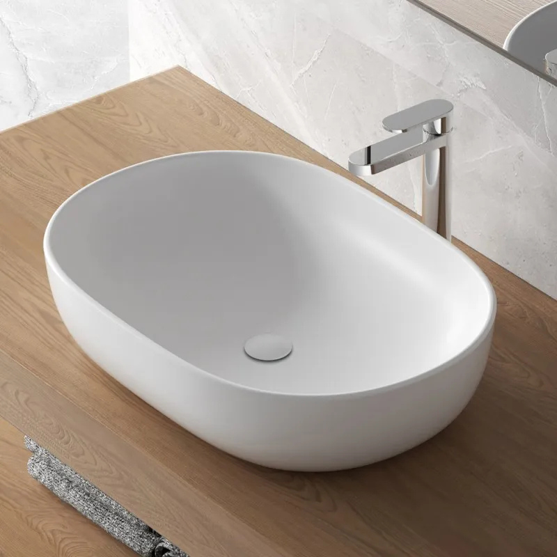 Lavabo Ovale da bagno 60x41 da appoggio in ceramica bianco opaco linea Boston